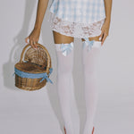 This layered skort features a lace underlay peeking out beneath a twinkle foil gingham mini, finished with a statement bow at the back. Sweet but cheeky, it’s totally Dorothy but with a Luana edge.
