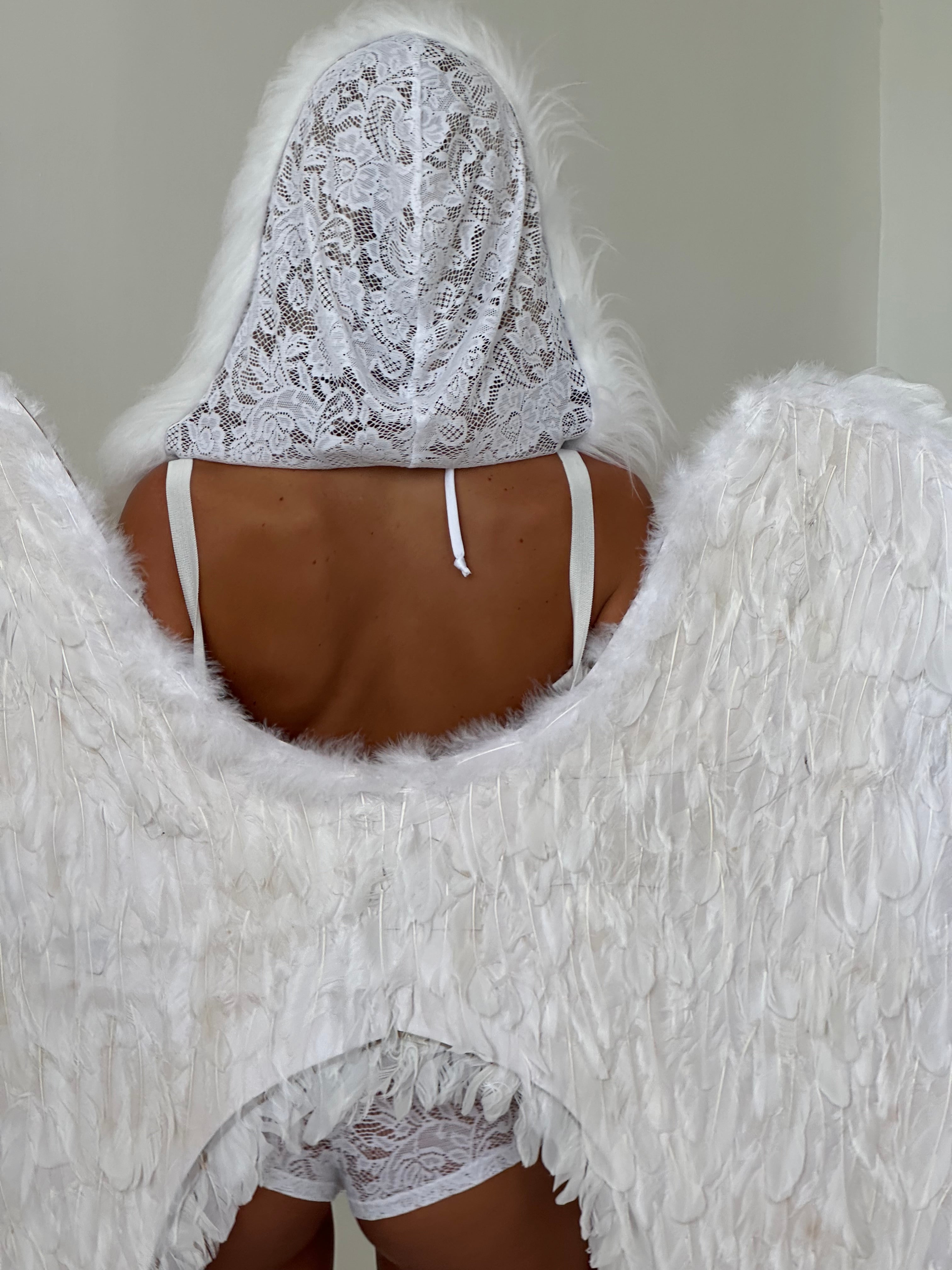 White Lace Hood With Luxury Faux Fur Trim [Made To Order]
