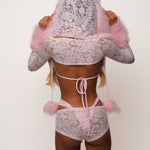 Pink Lace Hood With Luxury Faux Fur Trim [Made To Order]