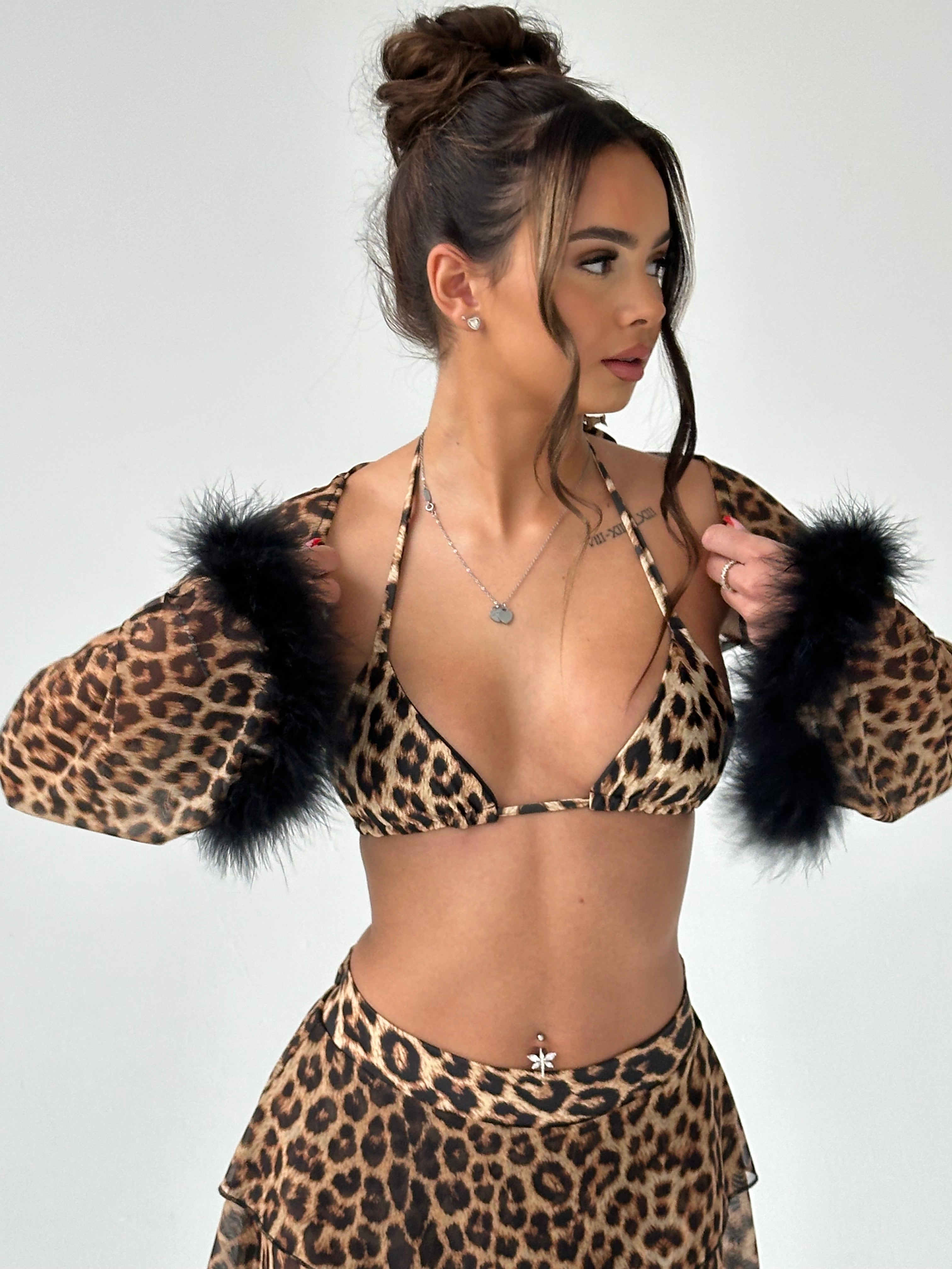 Leopard print triangle top.